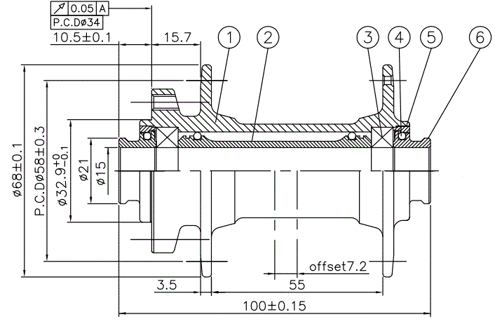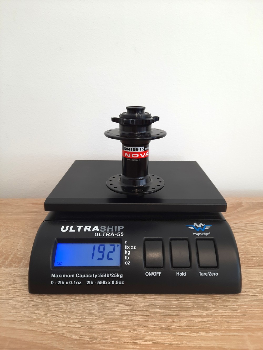 Hub front D041SB-15 alloy, anodized black, 32H/14G, with Novatec 360 logo, axle 15×100, without Thru Axle, 2xNBK bearings, black side caps, OEM (CN)