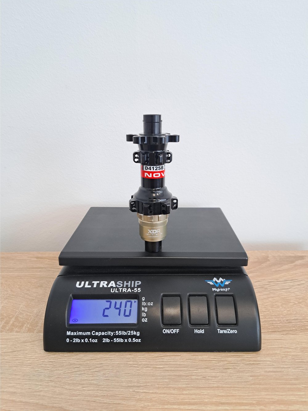 Hub rear D412SB-X12-A4A-XDR, straight pull, polished anodized black, 28 key hole, Axle alloy 12×142 for thru axle, D:45.9, alloy freehub B2-type, 5xNBK Bearings, black side caps, Novatec 360 logo, OEM