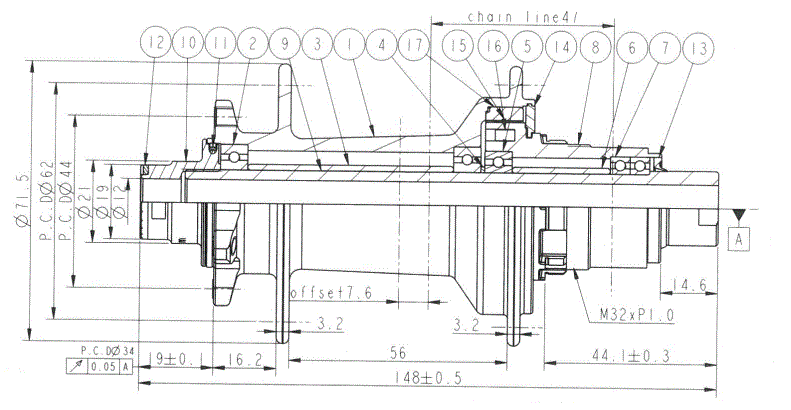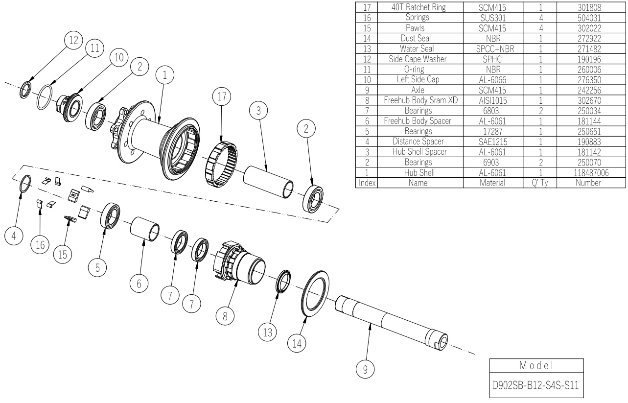 Hub rear D902SB-B12-S4S-S11, E-MTB, polished anodized black, 32H/14G, Steel axle 12×148, w/o QR, D:44.1, 5xNBK bearings, Ratchet Ring 40T, SRAM XD, Steel H-TYPE (404 system) cassette body (E440), 4-PAWLS, black side caps, with Novatec Laser logo, OEM